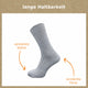 Die 100% natürliche, reine und ungefärbte Baumwolle lässt Ihre Füße atmen und unterbindet das Entstehen von feuchter Wärme. Ideale Socken für jede Jahreszeit. Der Komfortbund verhindert ein Einschneiden und die Entstehung von Druckstellen im Wadenbereich. Durch die handgekettelte Fußspitze gibt es im Zehenbereich kein Reiben und Drücken.