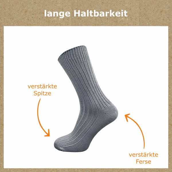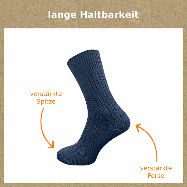 Baumwollsocken 100% | Mit Rippschaft | Dick & Grob gestrickt | Damen & Herren (6 Paar)
