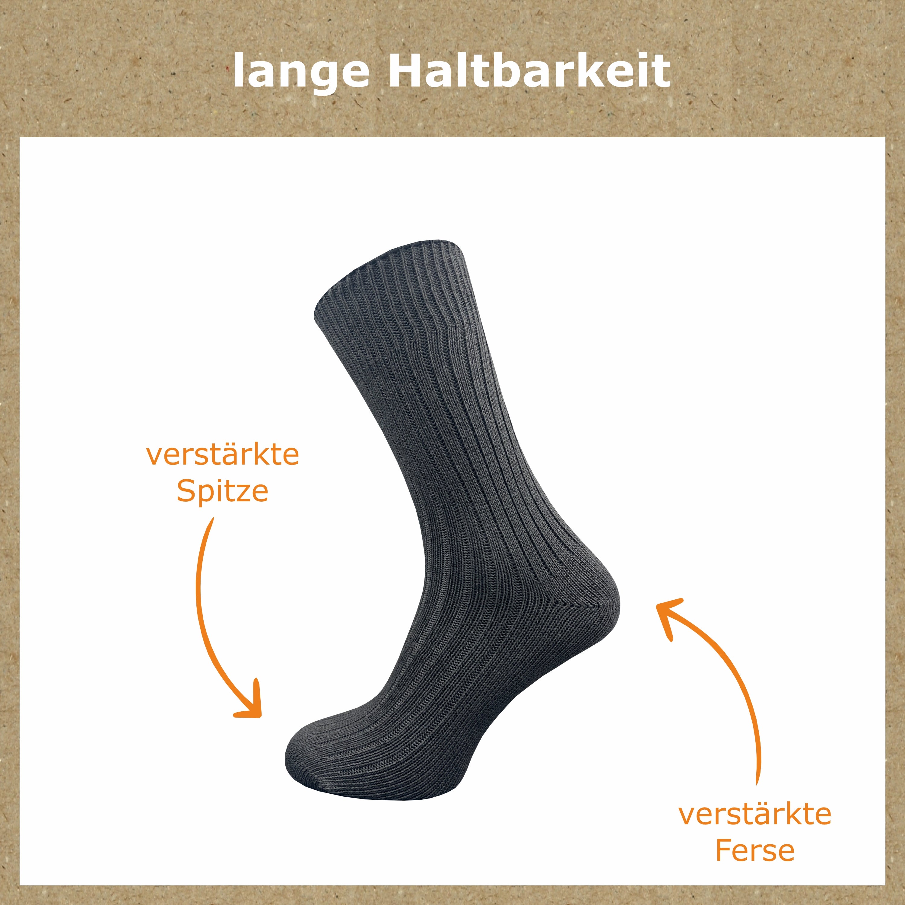 - LANGE HALTBARKEIT: Verstärkte Belastungszonen an Ferse und der Fußspitze sorgen dafür, dass die Herrensocken lange halten