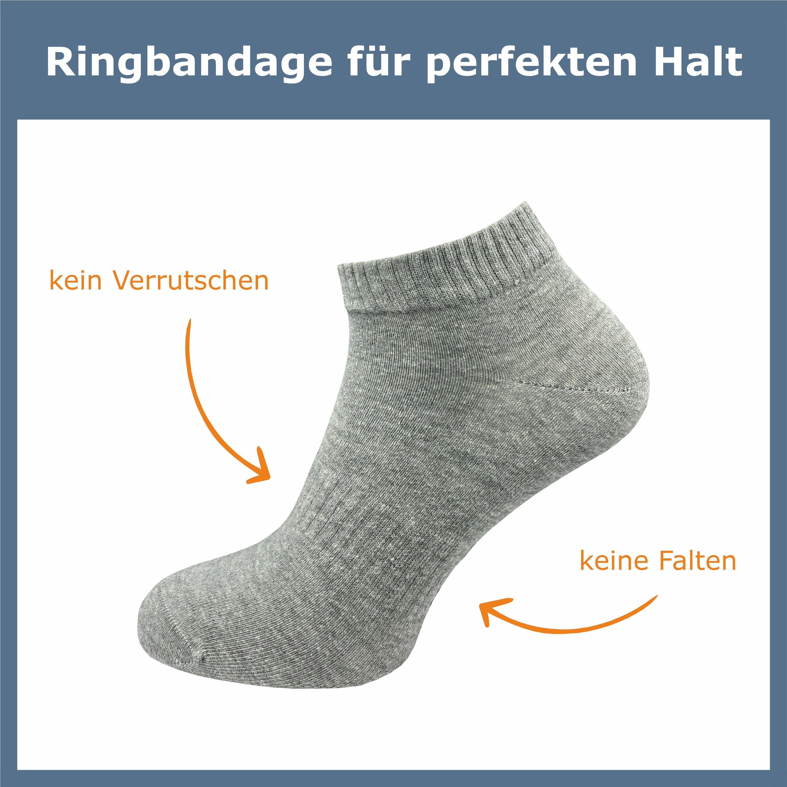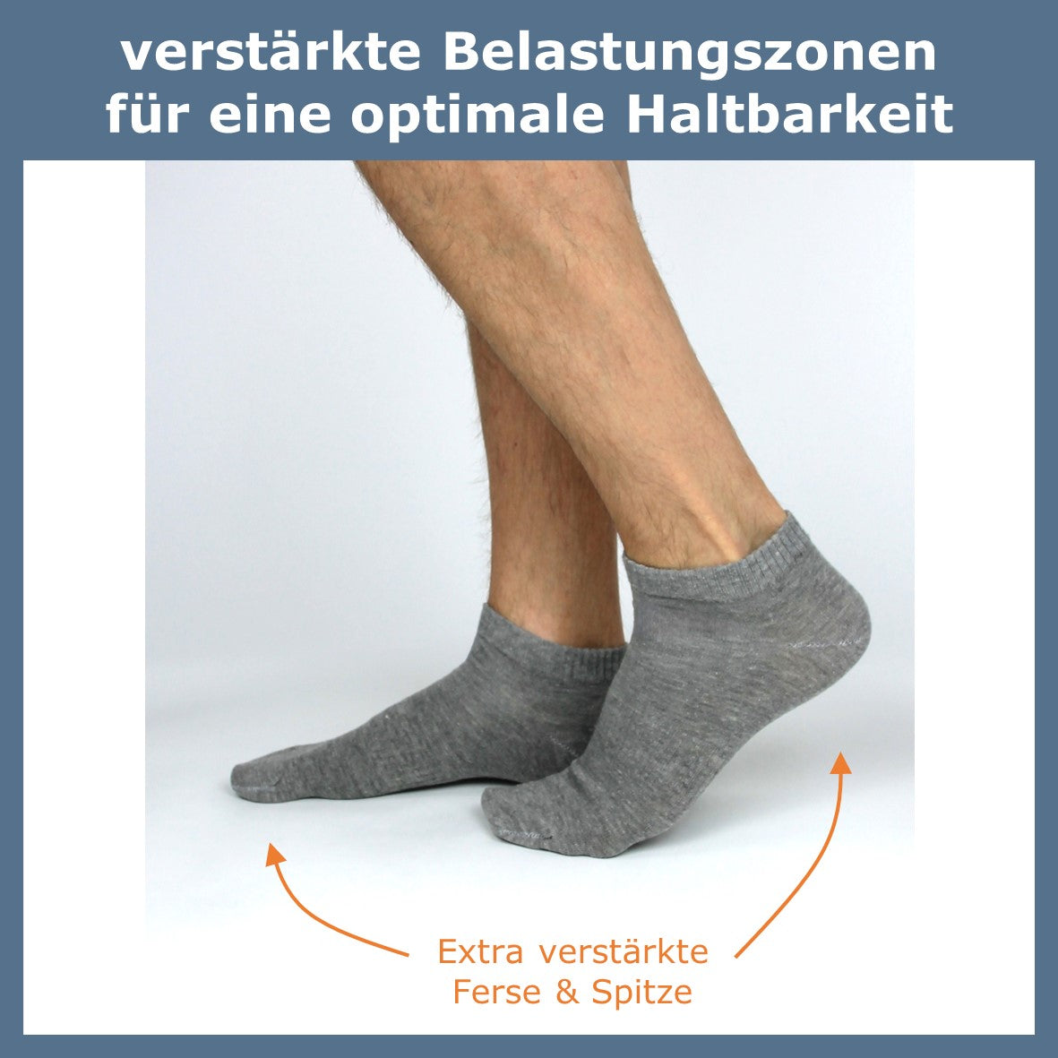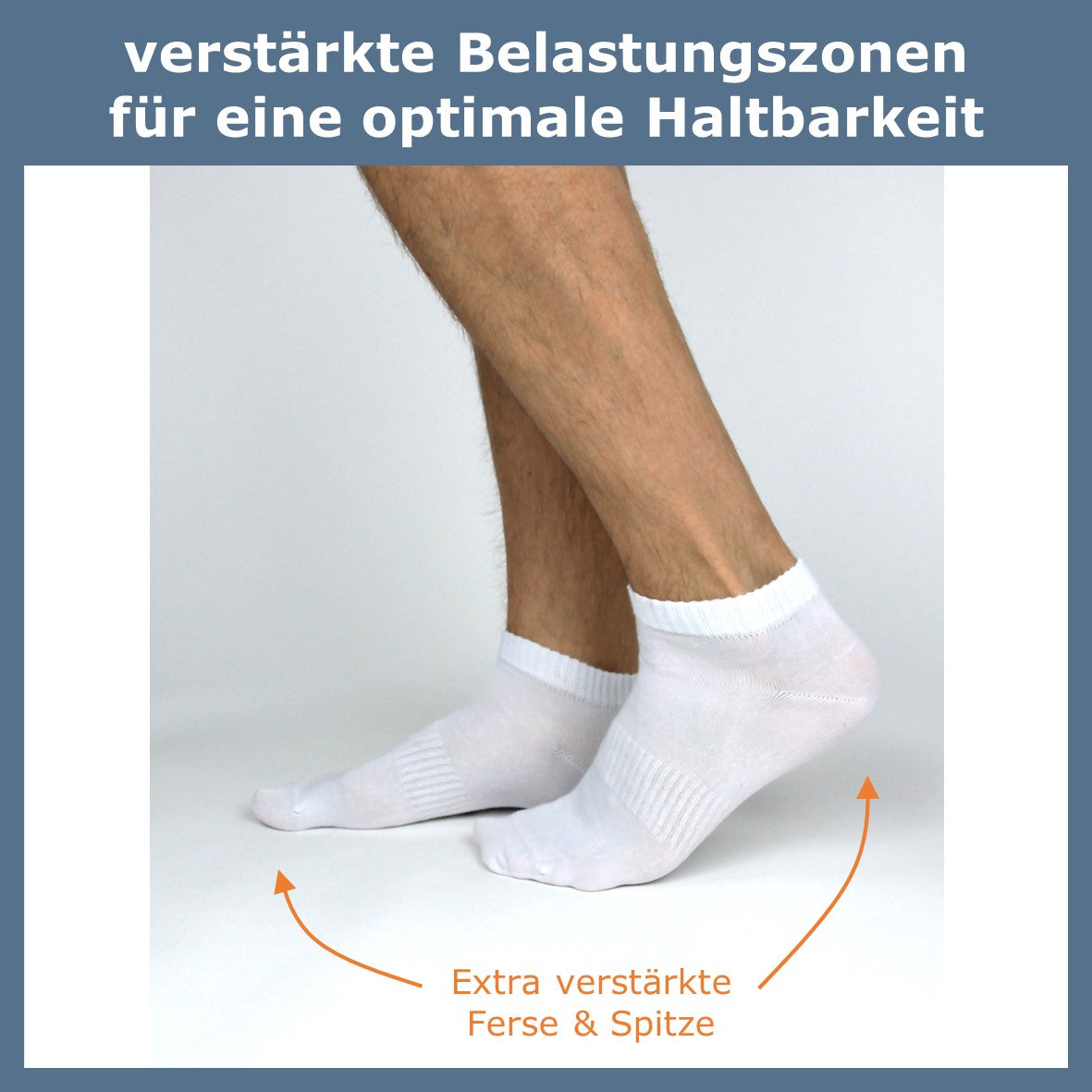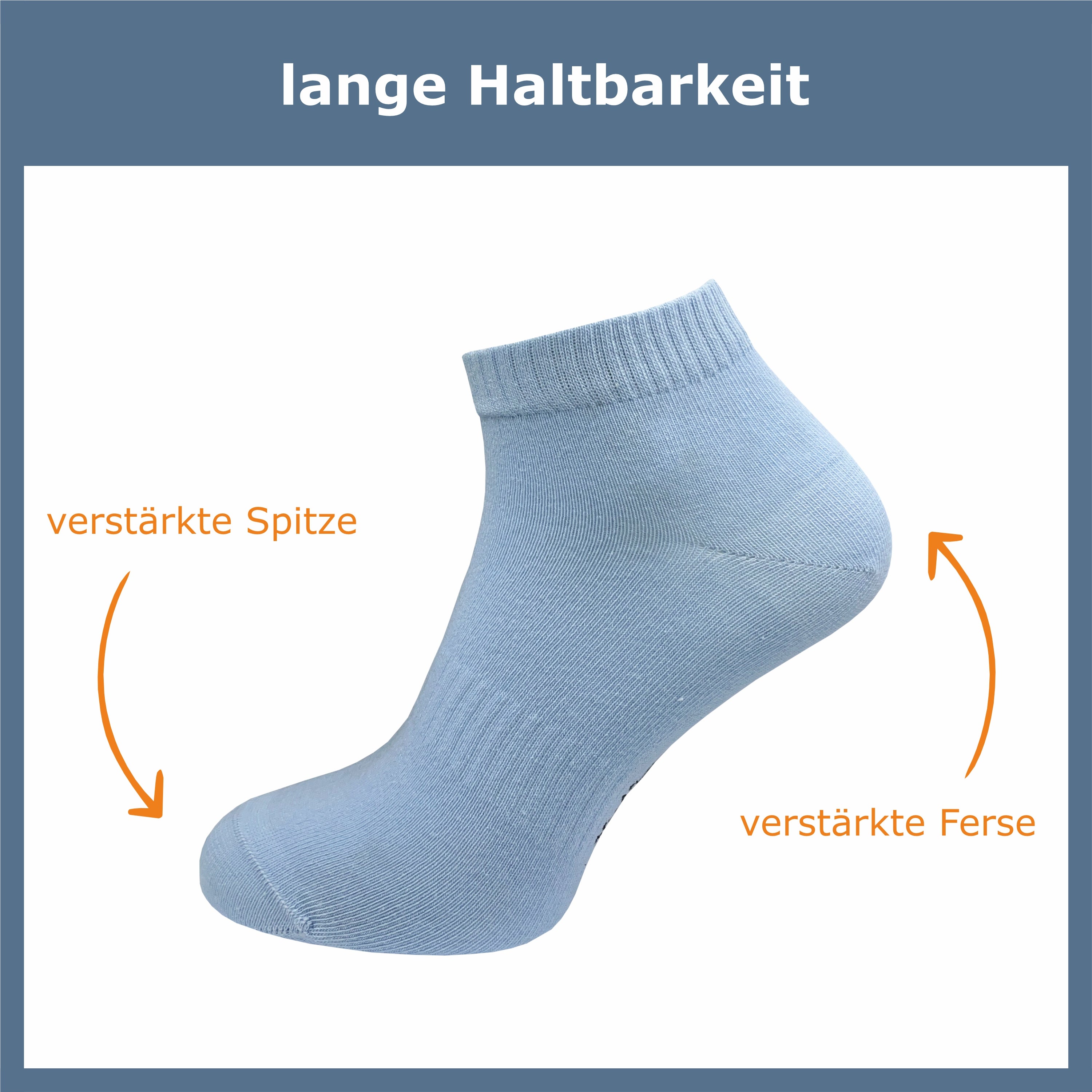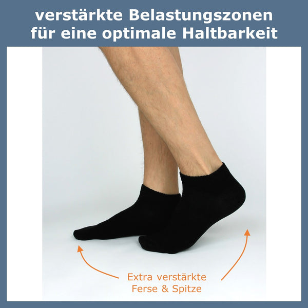- Optimale Haltbarkeit: Verstärkte Belastungszonen an Ferse und Fußspitze sorgen für eine hohe Langlebigkeit der Kurzsocken