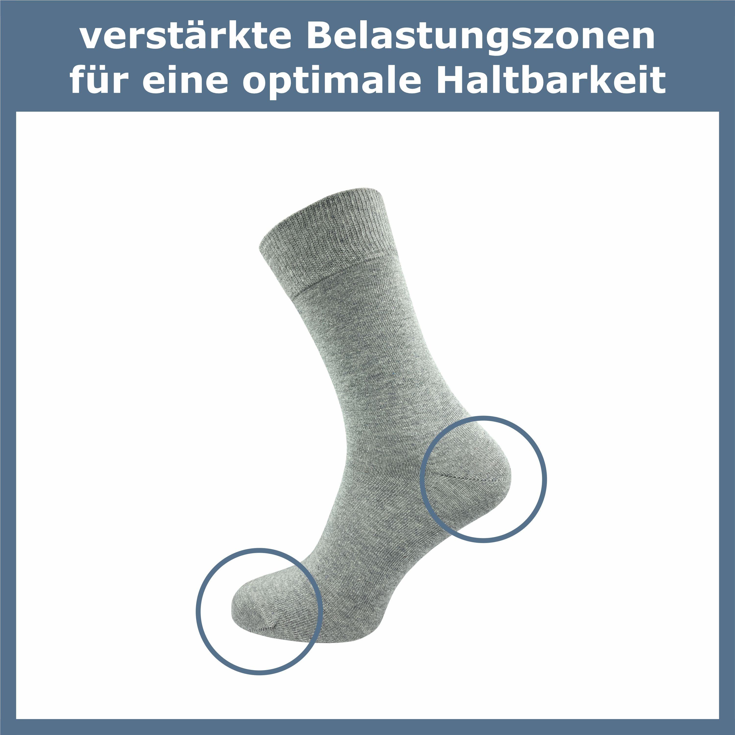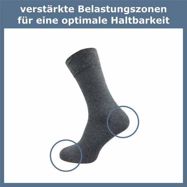 • Lange Haltbarkeit: Verstärkte Belastungszonen an Ferse und Fußspitze sorgen für eine lange Haltbarkeit der Damen- und Herrensocken