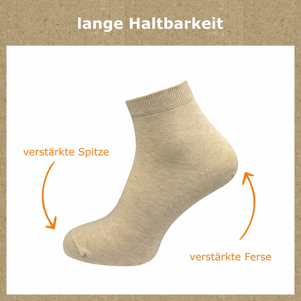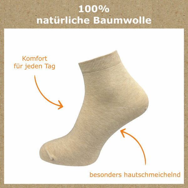 Quarter Socken 100% Baumwolle | Beste Qualität, Perfekte Passform | Kurzsocken Damen (10 Paar)
