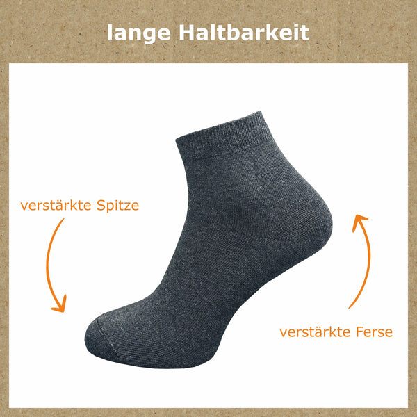 - 100% BAUMWOLLE: Zu 100 % aus reiner Baumwolle gefertigt, sind die Quartersocken besonders hautfreundlich, weich und pflegeleicht