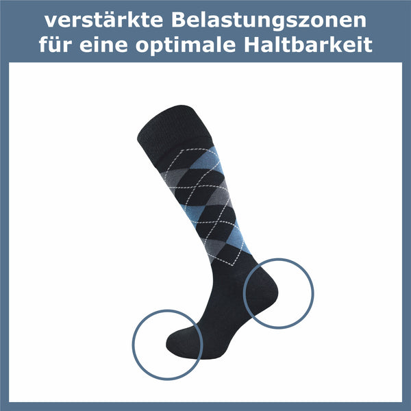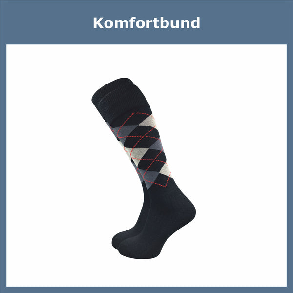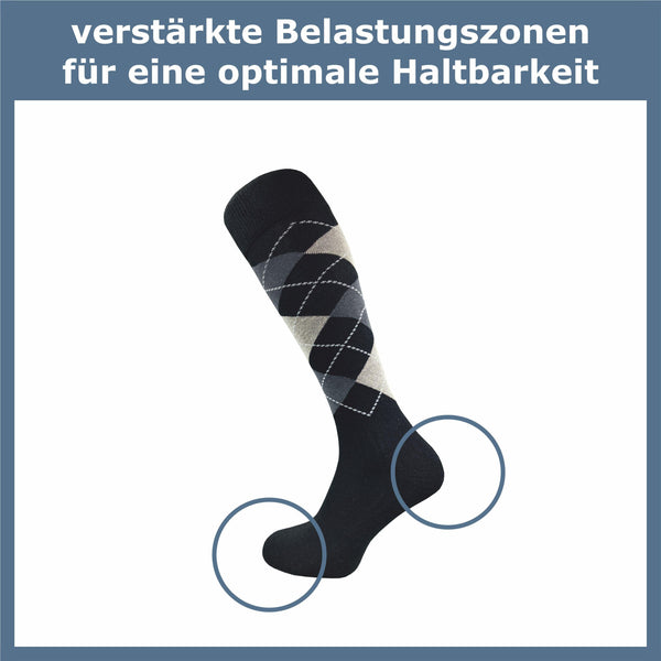 Gawilo Reitsocken für Damen und Herren im klassischen Karo-Design, mit warmer Plüschsohle und bequemen Bündchen, die nicht einschneiden oder verrutschen. Handgenähte Spitze, keine drückenden Nähte.