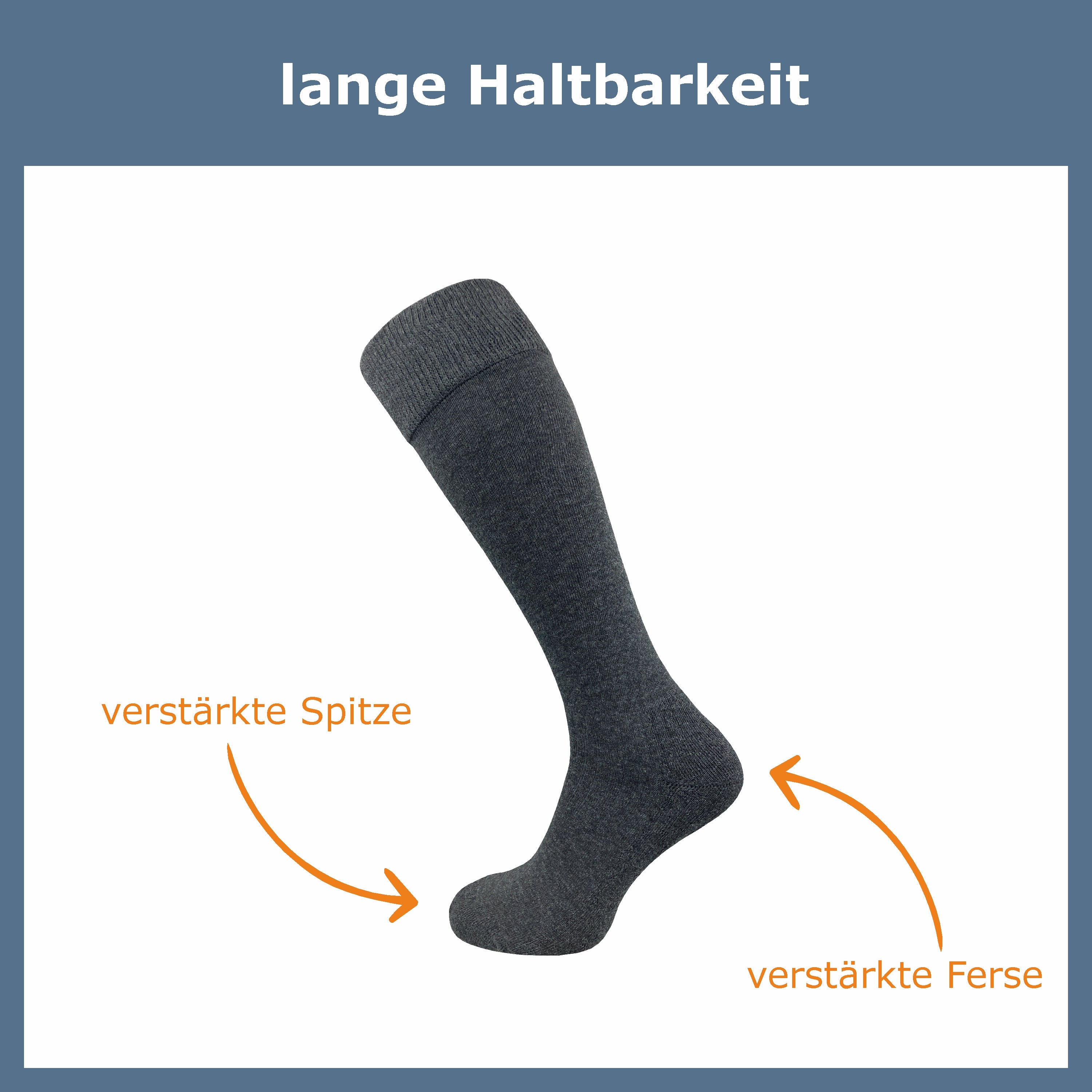 - EXTRA VERSTÄRKT: An den wichtigen Belastungszonen wie Ferse und Fußspitze sind die Anzugsocken für optimale Haltbarkeit verstärkt