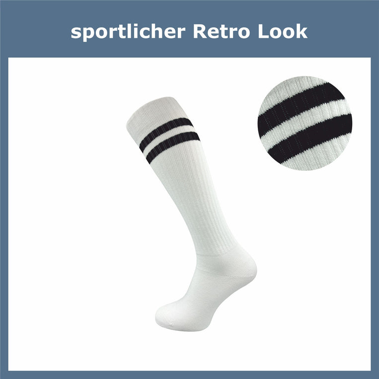 Retro Kniestrümpfe mit stylischen Streifen aus Baumwolle | Weiß & schwarz | Herren (2 Paar)