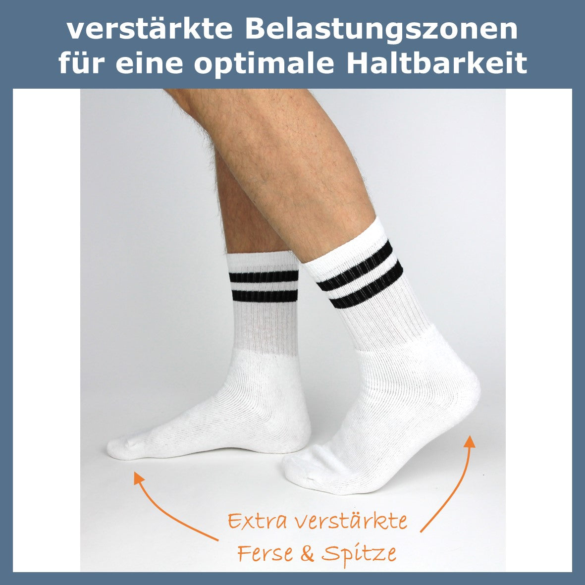 Diese stylischen Herrensocken von GAWILO sind wirklich vielseitig. Die Socken funktionieren sowohl in der Freizeit als auch beim Sport: Tragen Sie diese bequemen Socken beim Tennisspielen, Rollschuhlaufen und Skaten oder peppen Sie Ihr Outfit mit diesen trendigen Retro-Trend-Tennissocken auf. Sportsocken überzeugen durch ihre unterschiedlichen durchdachten Eigenschaften. Die verstärkte Schwammsohle verhindert die Bildung von Blasen an Ihren Füßen. Darüber hinaus werden die Belastungsbereiche, Ferse und Zehen des Fußes verstärkt, was eine lange Lebensdauer der Socken gewährleistet. Ein stabilisiertes, geripptes Obermaterial verhindert, dass Retro-Tennissocken bei Bewegung verrutschen. Herren-Sportsocken werden in Portugal hergestellt und sind Öko-Tex 100 zertifiziert. Skatesocken bestehen aus Baumwolle, Polyester und Elasthan. Dadurch sind die Männersocken weich, atmungsaktiv, hautfreundlich und überzeugen mit einem perfekten Sitz. Herrensocken im 8er-Pack sind in verschiedenen Größen und Farben erhältlich.